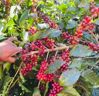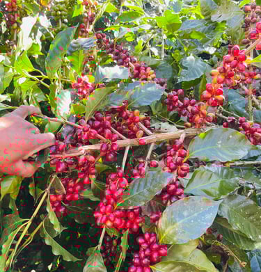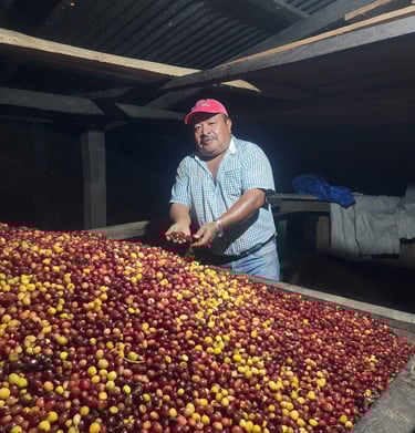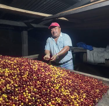 Las parcelas de nuestros productores se manejan con prácticas cuidadosas desde la siembra, el manejo de sombra y la cosecha manual de los frutos maduros, hasta el despulpado y secado tradicional. Este trabajo minucioso permite obtener una taza limpia, con cuerpo medio, acidez equilibrada y un perfil que alcanza entre 82-83 puntos SCA, manteniendo consistencia y uniformidad en cada lote.